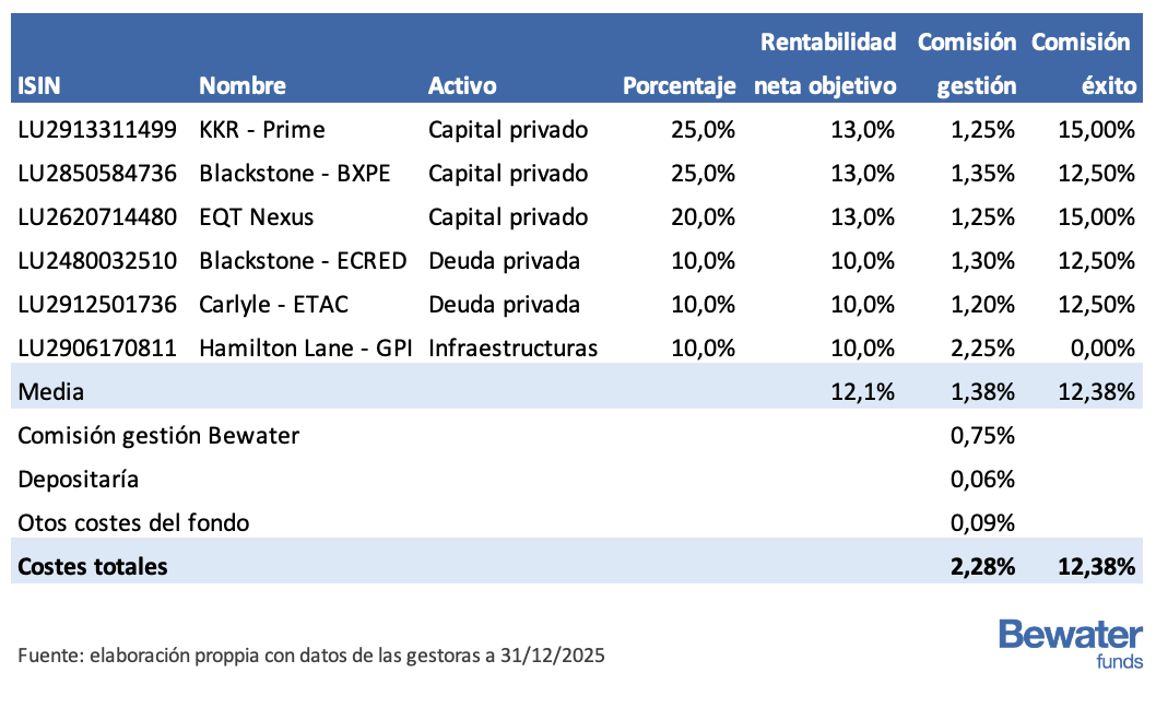 - El equipo gestor de Bewater toma al menos el 20% en la constitución del fondo. A lo largo del tiempo, puede rebajar su posición en el fondo manifestando su interés a la gestora.